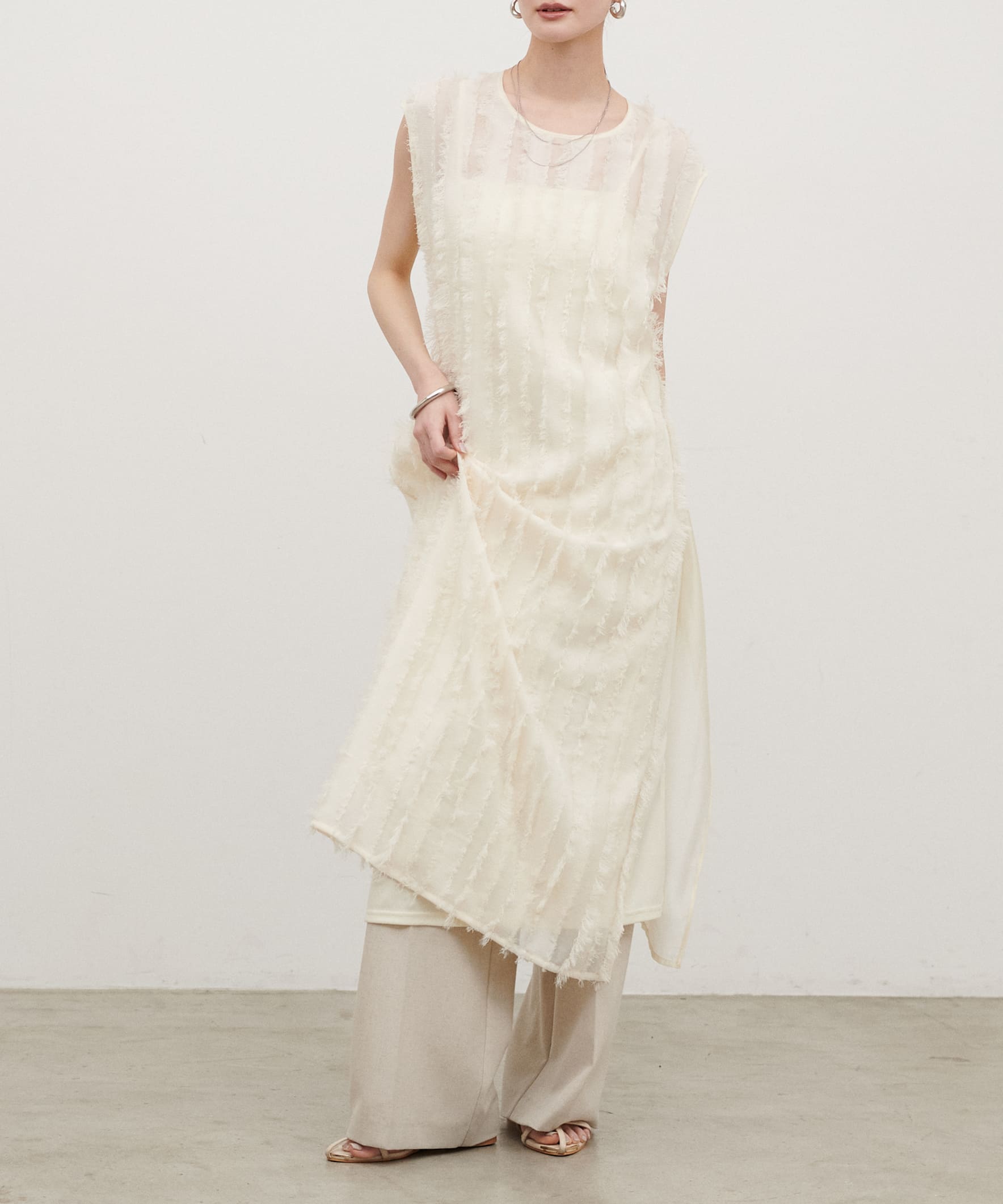 • フリンジストライプジャガードワンピース