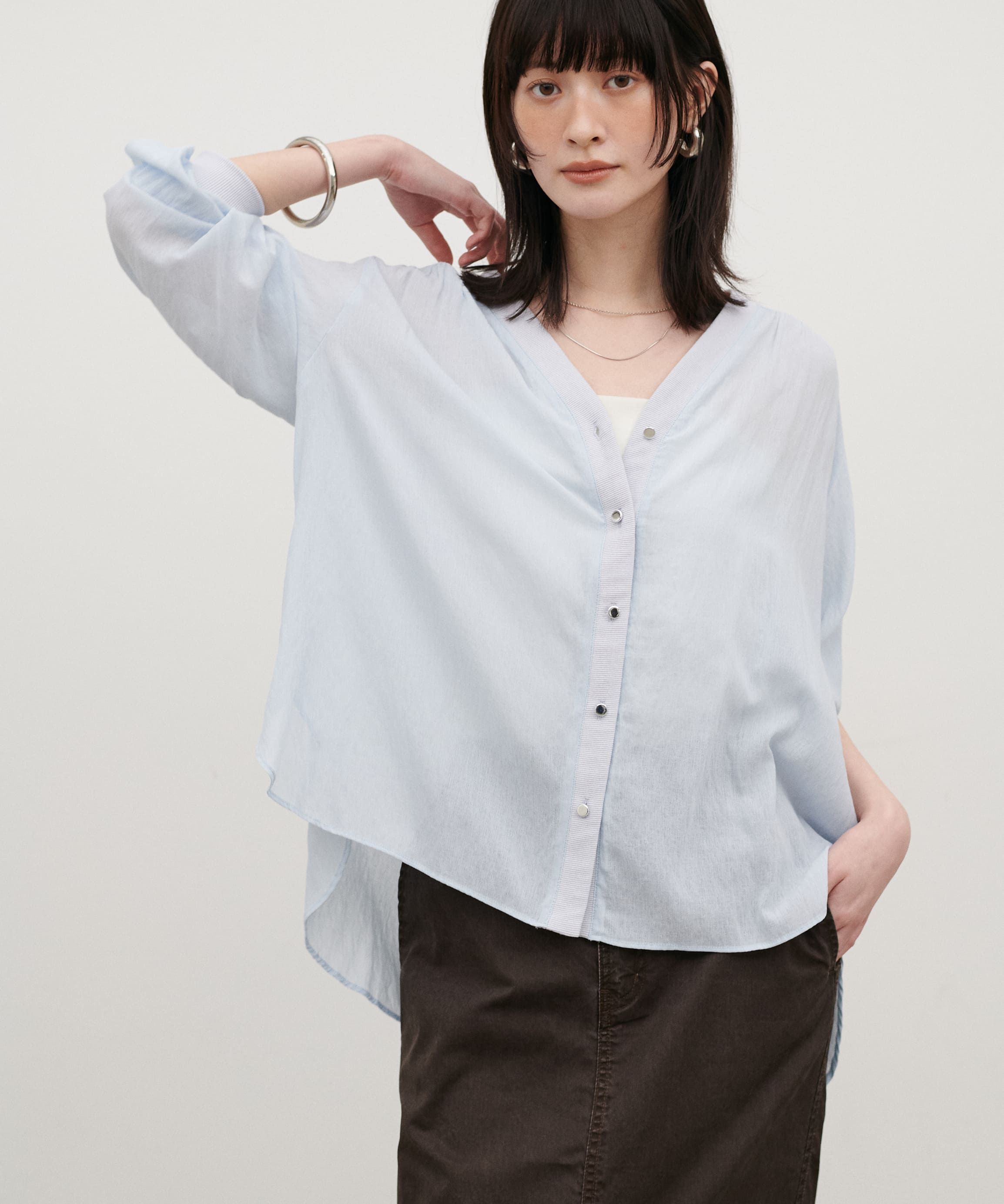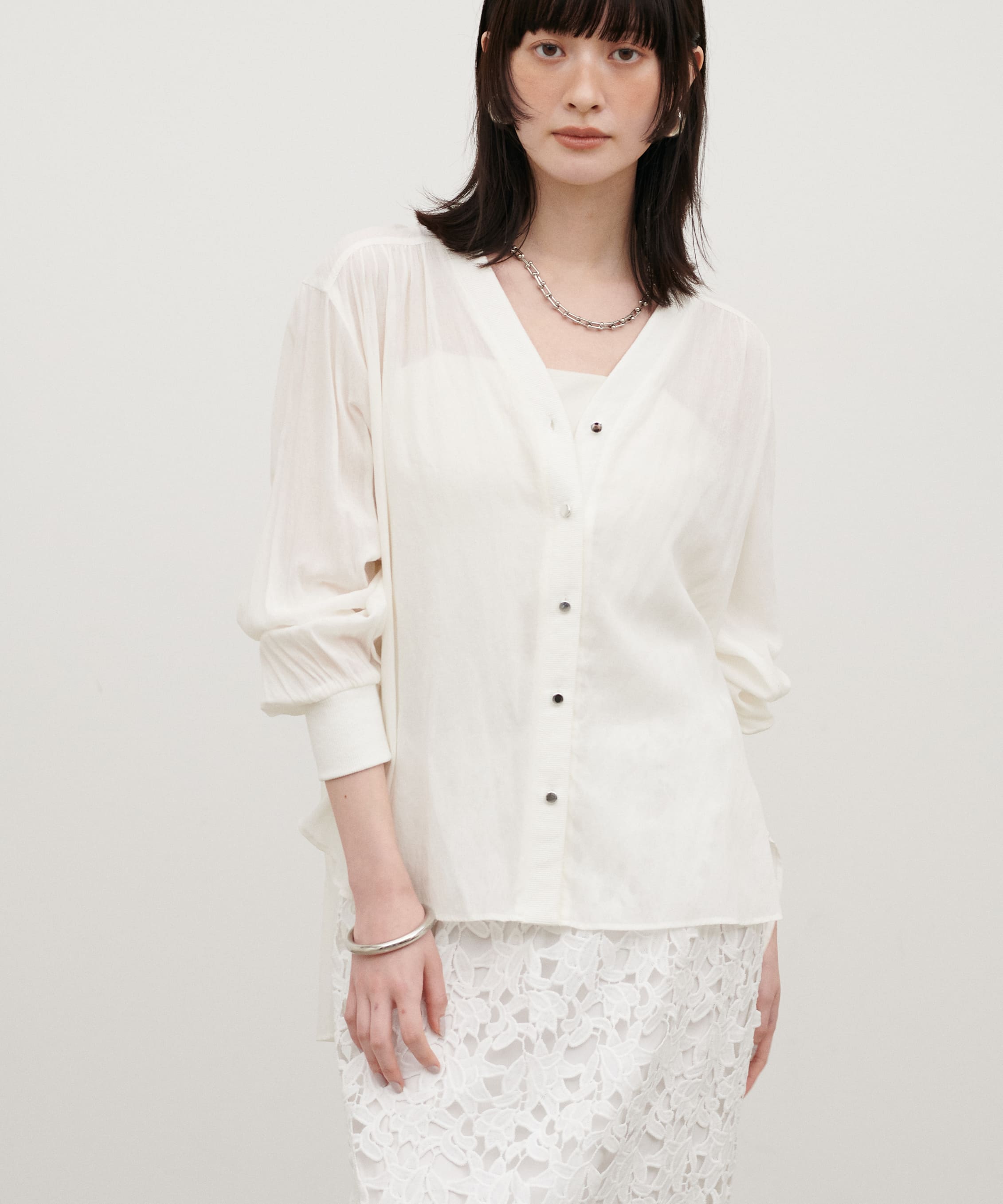 • 強撚シアーシャツカーデ