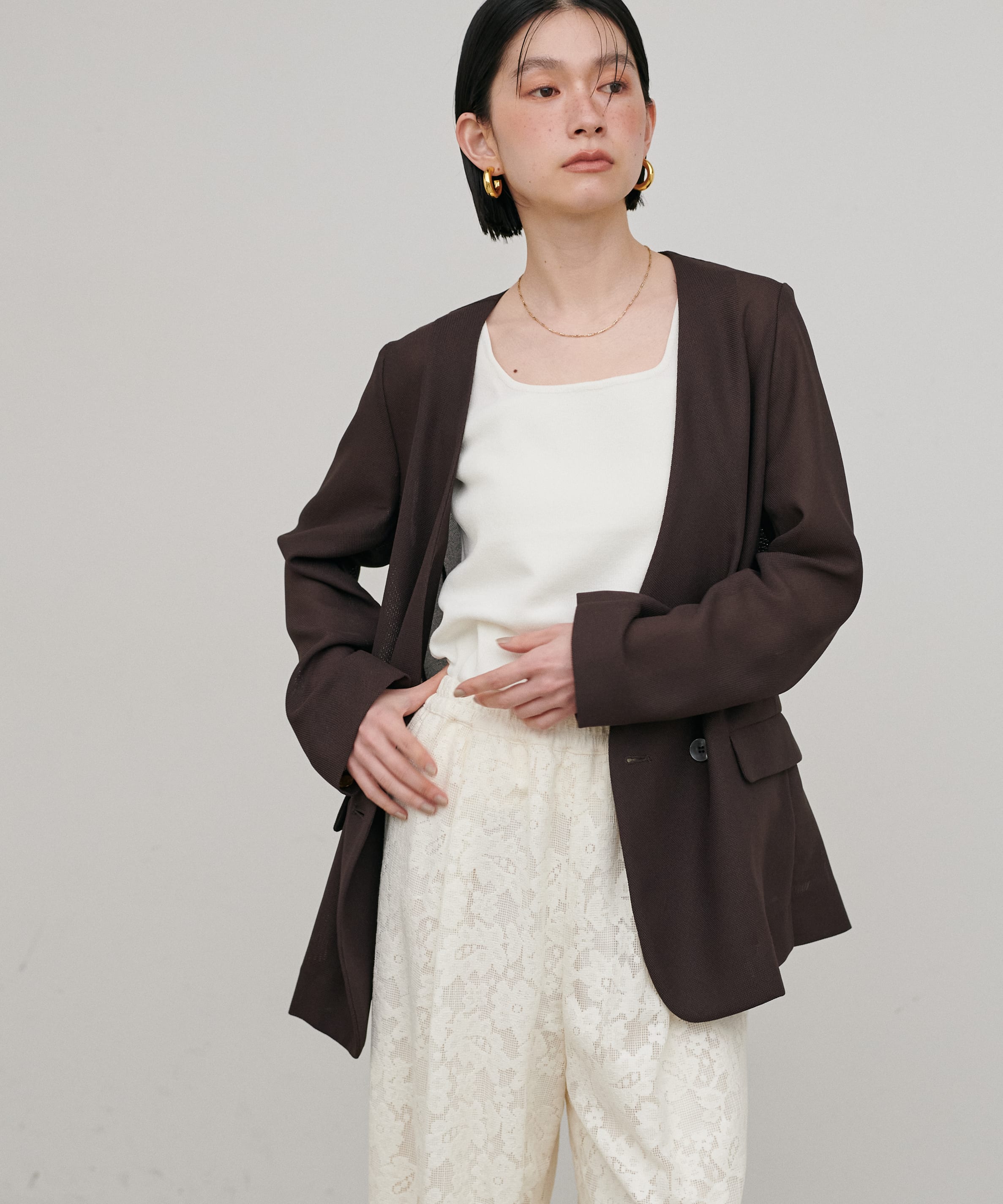• ノーカラーメッシュジャケット