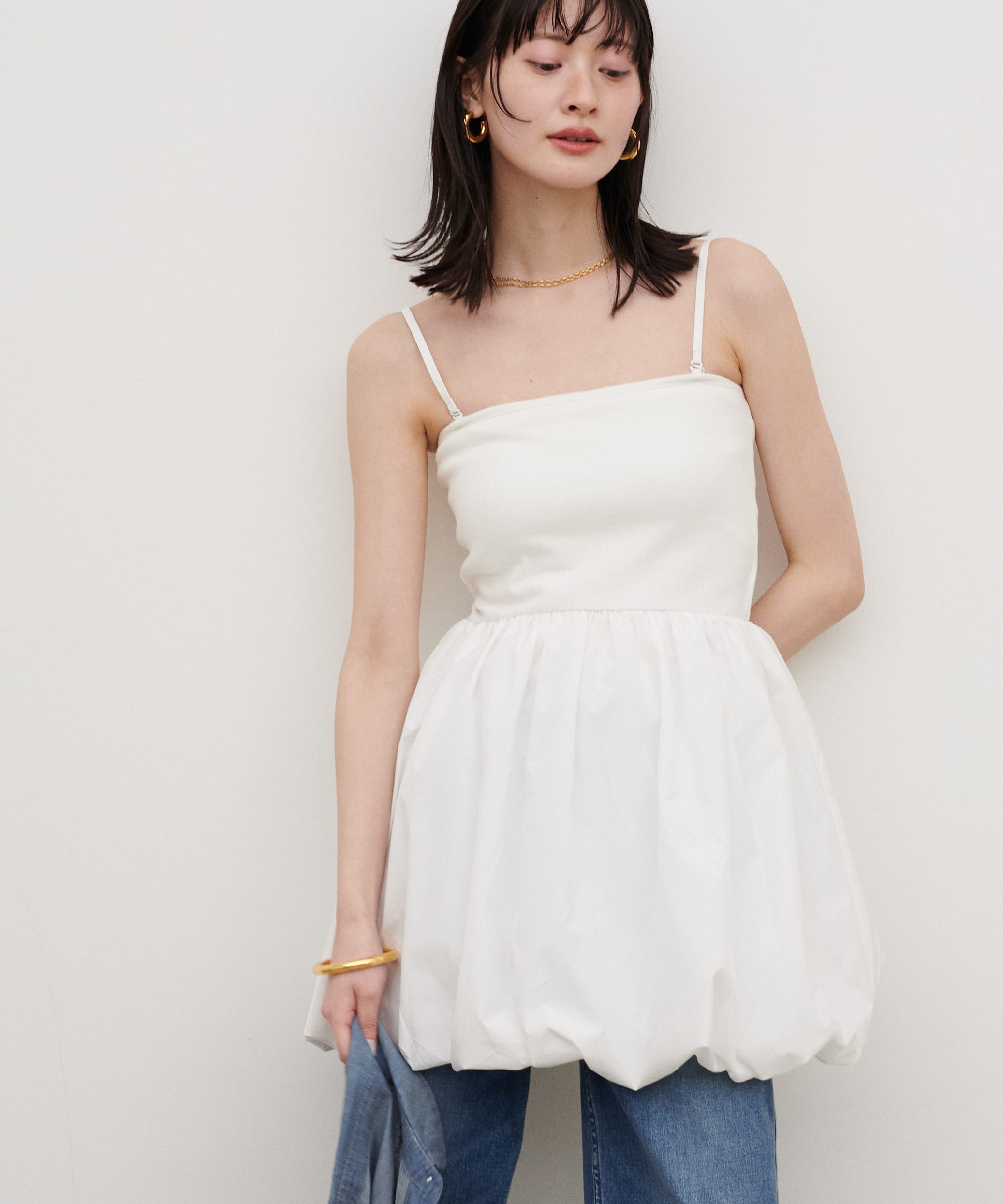 • 【WEB限】カップ付異素材バルーンキャミ