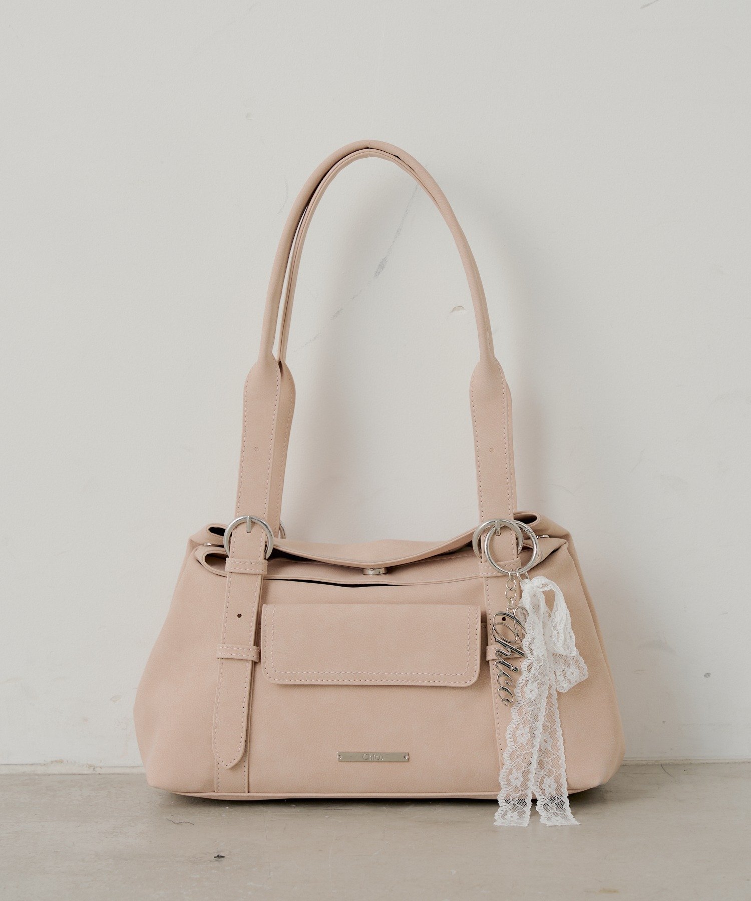 -チャーム付き横長ベルトハンドルバッグ-