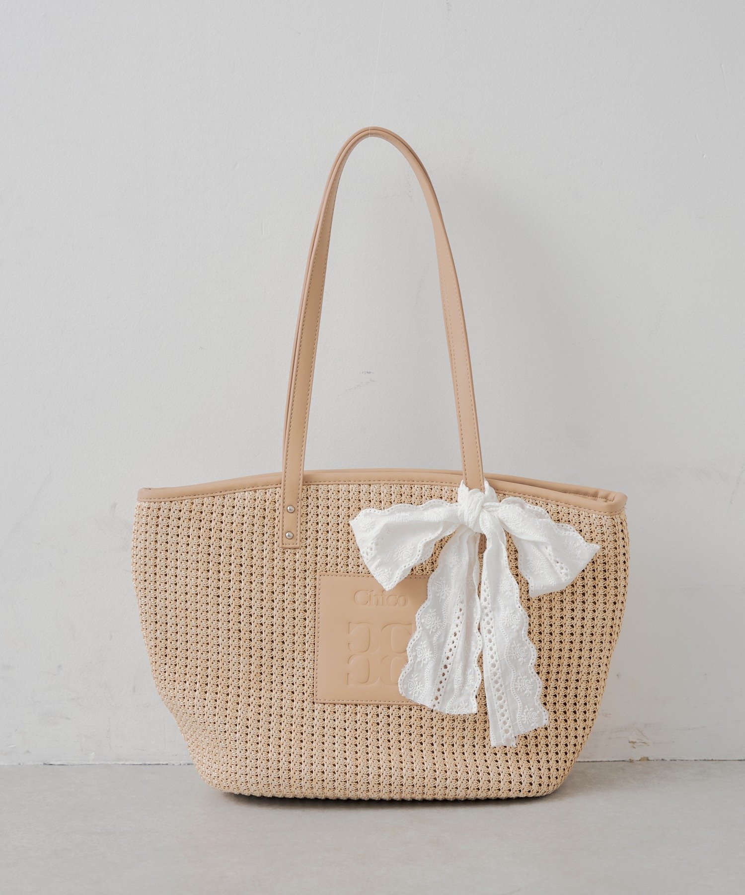 -レースリボン付カゴトートバッグ-