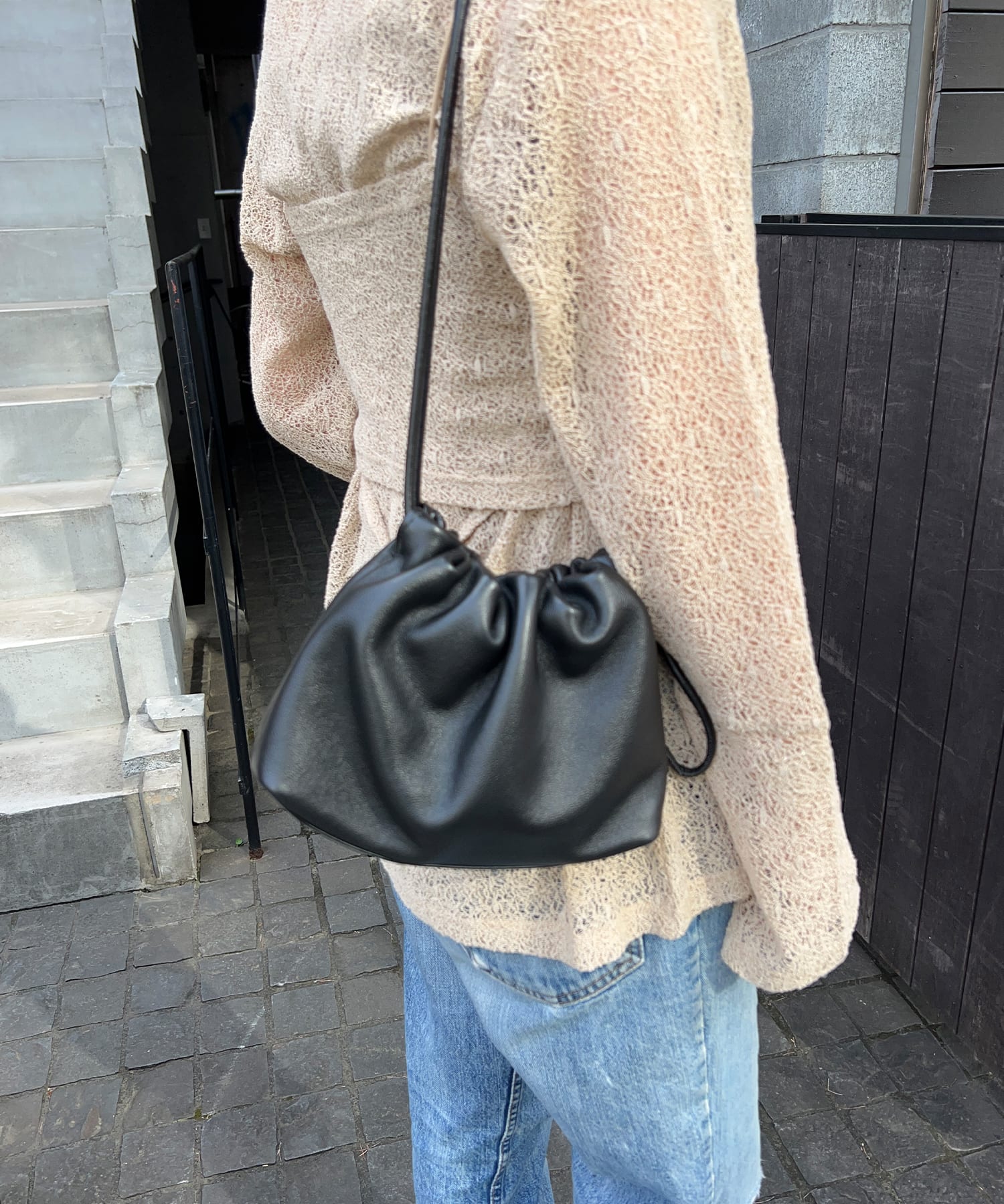 持ち手を絞ることで生まれる立体的なギャザーがポイントのバッグ。