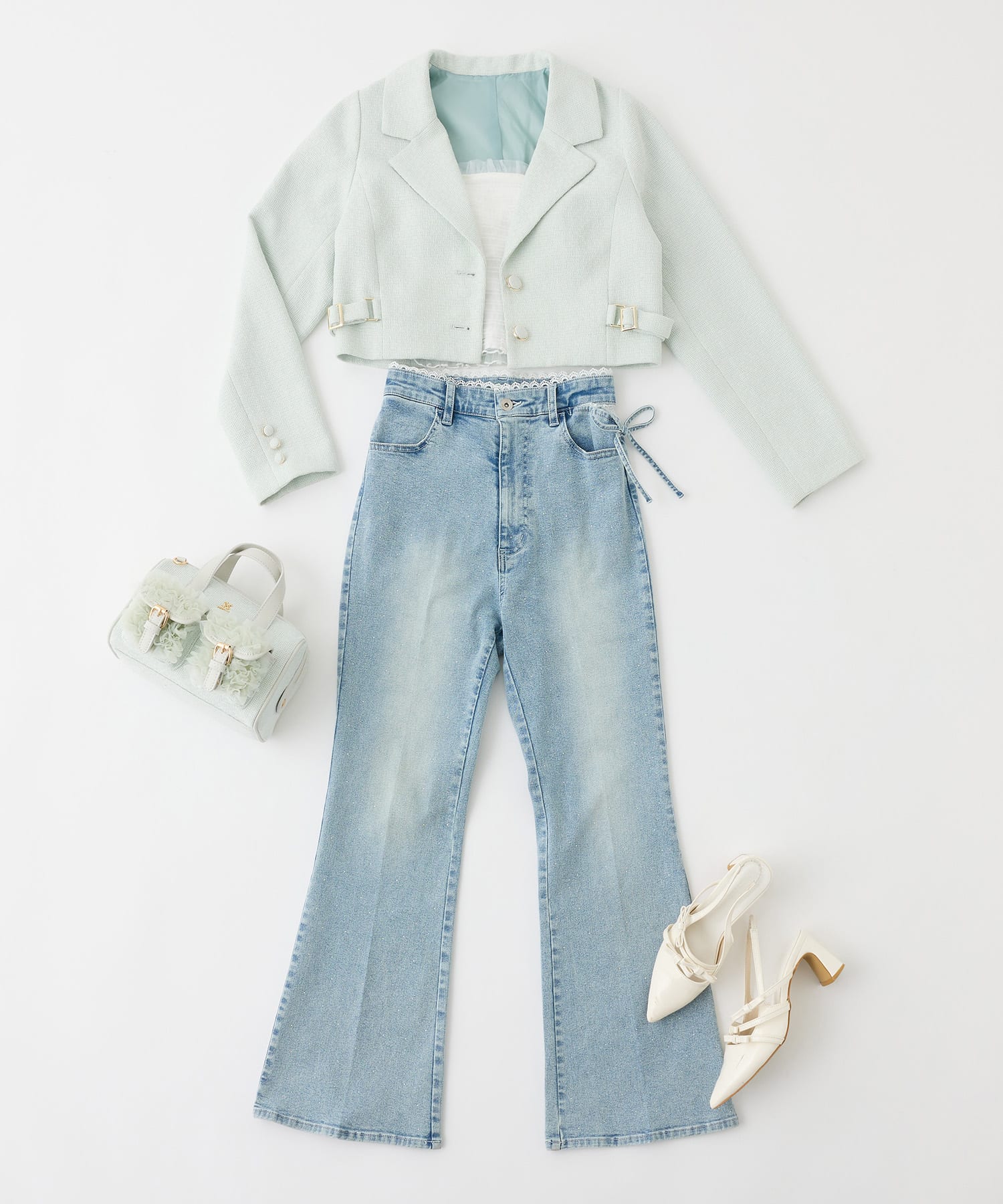 使用アイテム:サイドカットレース美脚ビジューデニム