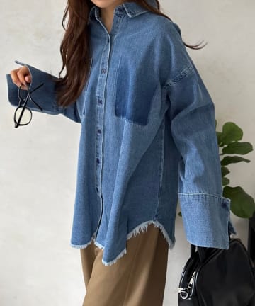• ライトオンスデニムビッグカフスシャツ