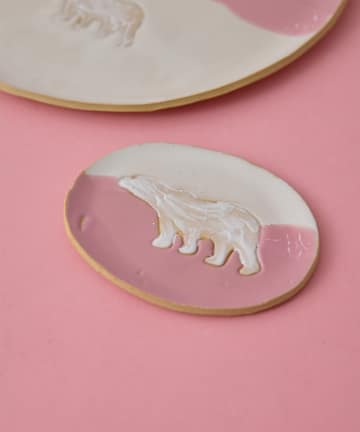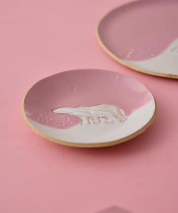 スペシャルな別注アイテムとして、人気の「惑星」と「ソーサー」というお皿やスペシャルデザインの「コースター」と「楕円皿」にteto ceramicsのシグネチャーキャラクターである「シロクマ」を冠し、SAKURAのイメージで春の気分を楽しんでいただける作品ををご用意いただきました。