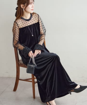 低身長あり オケージョン DISCOAT 【オケージョン】フロッキードットベロア切替ワンピース ¥17,600