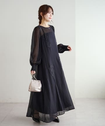 Thevon. 【オケージョン】シアーブラウス×フラワーレースキャミワンピース ¥16,500