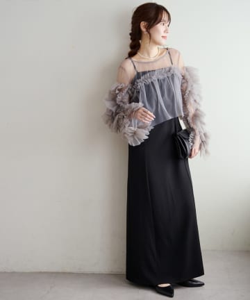 手洗い可 低身長あり オケージョン DISCOAT 【オケージョン】チュールフリル使いセットワンピース ¥18,700