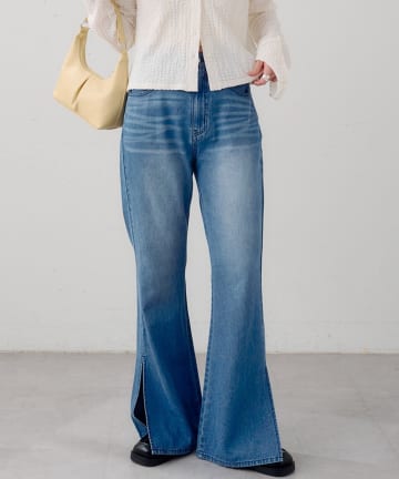【3サイズ展開/低身長サイズ/高身長サイズ/セットアップ対応】B サイドスリットフレアデニム