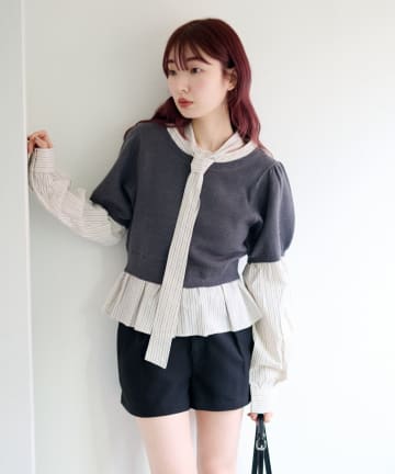 【CINAMOD】 RIB PANTS WITH SKIRT