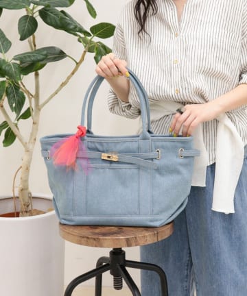 金具ベルトデニムトートバッグ