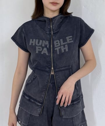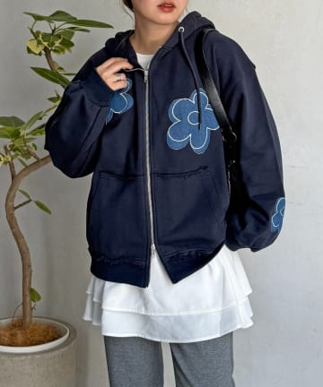 デニムアップリケ裏毛ジップパーカー