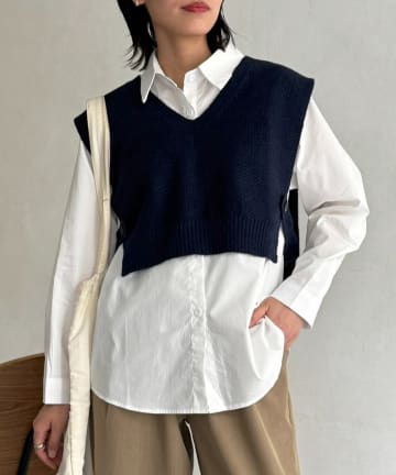 Vネックベストセットシャツ