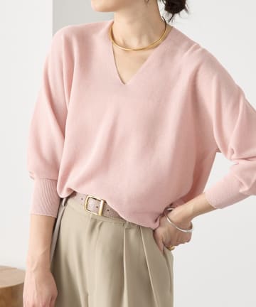 スウェットライクVネックニットプルオーバー
