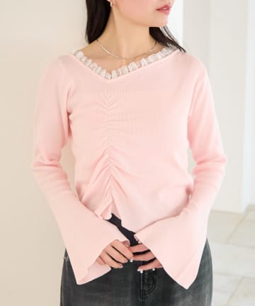 【4色展開】レースシャーリングニット