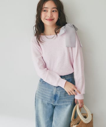 【最強着映え】ブークレスパンコールオフショルリボンニット