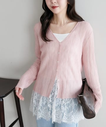 レース付きリブカーディガン