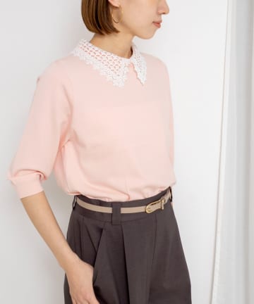 《手洗い可能》襟レース取り外し6分袖プルオーバー