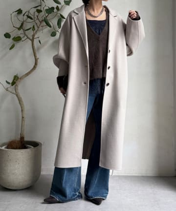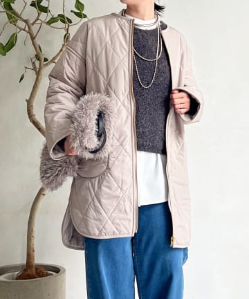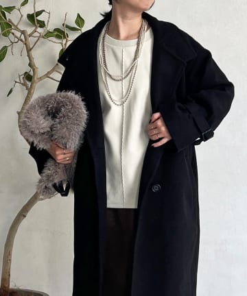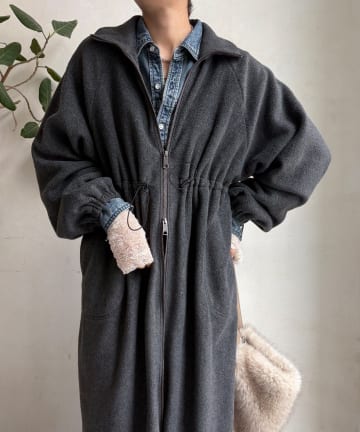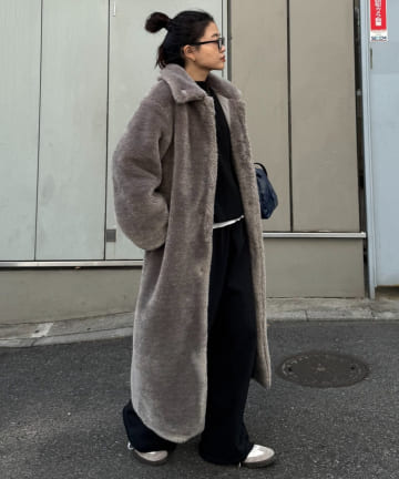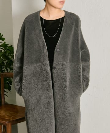 《ノーカラー》ボアロングコート【SUM1 STYLE(スミスタイル)】