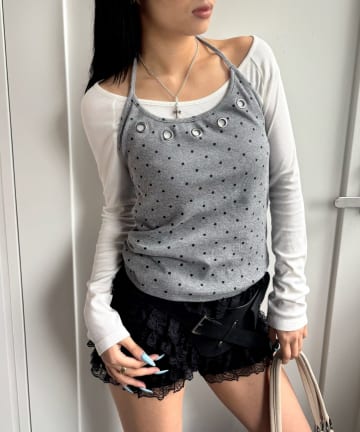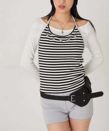 アイレットホルターレイヤードトップス(無地/ボーダー/ドット)