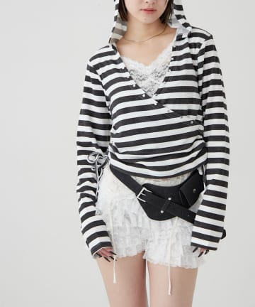 スタッズリブカシュクールフーディ