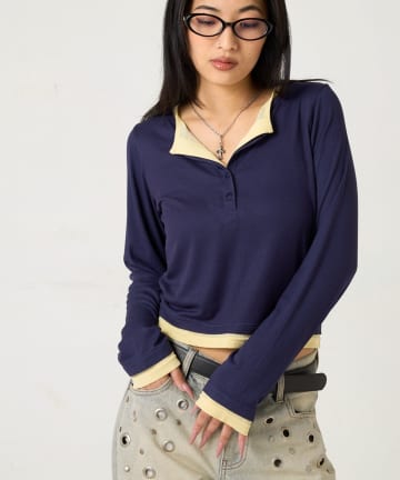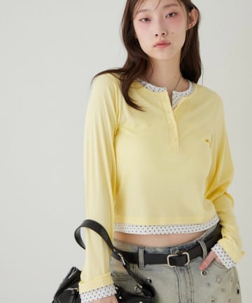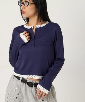 【WEB限定カラーあり/ドット柄】レイヤードヘンリートップス