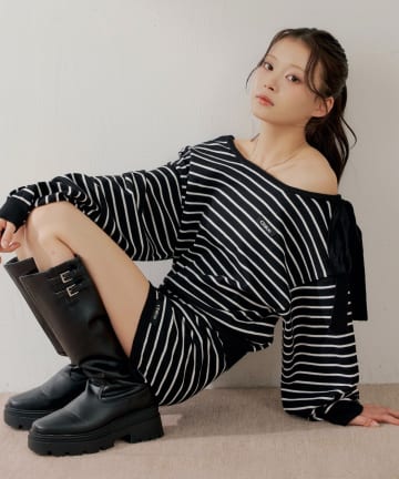 【セットアップ対応】ワンショルボーダーニット