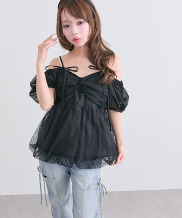 ツイストリボンオフショルチュニック