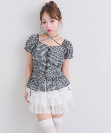 【セットアップ対応】ピコレースチェックショートパンツ