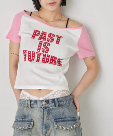 スタースタッズラグラン半袖ロゴトップス