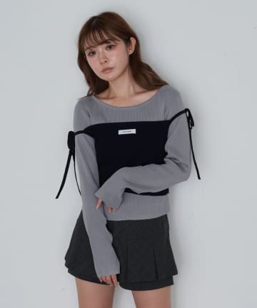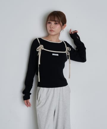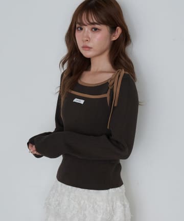 ワンショル前あきリブニット