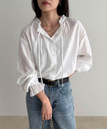 シャイニーシアーギャザーブラウス