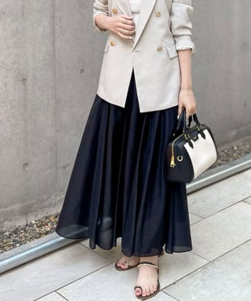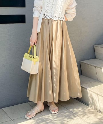 ウォッシャブルシアーボリュームフレアロングスカート