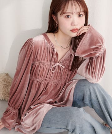 WEB限定/【canami】2WAYリボンベロアブラウス