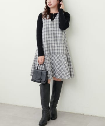 【WEB限定】〈canami〉ニットドッキングフリンジぺプラムTOPS