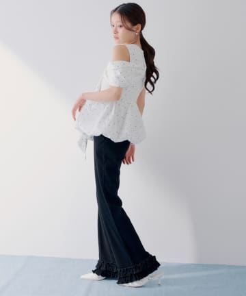 【SALON by Chico】オフショルランダムチュールドットブラウス