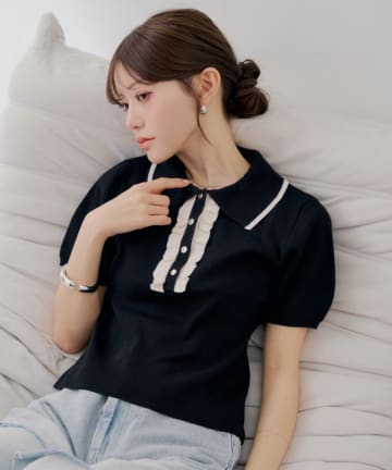 【SALON by Chico】配色ポロ襟ニット