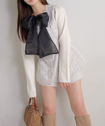 【Seemi.】【セットアップ可能】金ボタンツイードミニワンピ