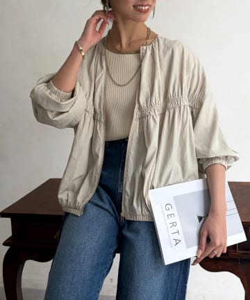 レーヨンナイロンギャザーブルゾン