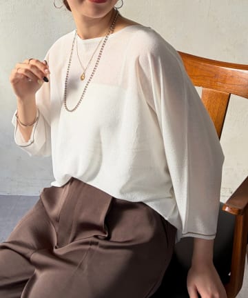 袖先シアーリブニット