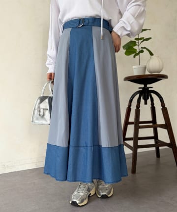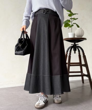 デニム切替フレアスカート