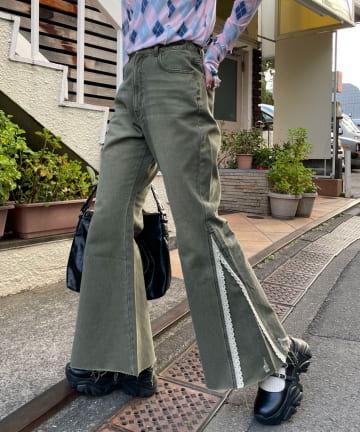 【CIAN DENIM/シアンデニム】スプリットフロントワイドデニム