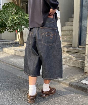 【cian denim/シアンデニム】バギーワイドデニムショーツ/ハーフパンツ