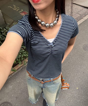 【neutral by ciaopanic】スクエアネックシャーリングブラウス