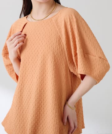 【ストレッチ◎ファスナー付き】袖シアー切替ジョーゼットロンT
