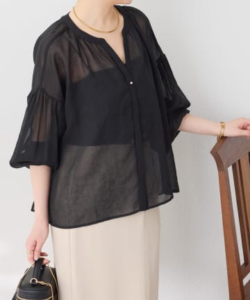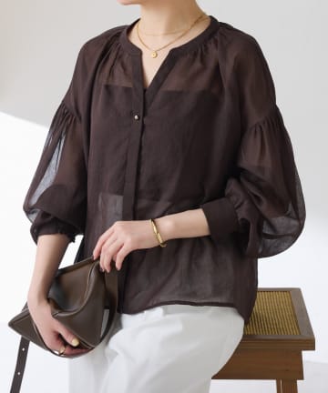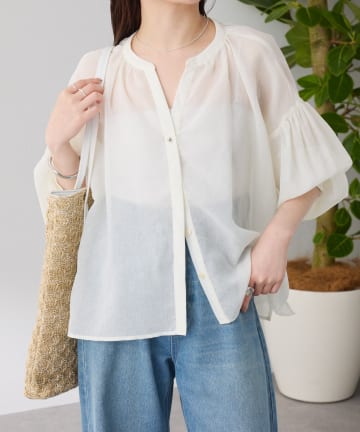 【前後2WAY/冷房対策◎】スキッパーシアーブラウス