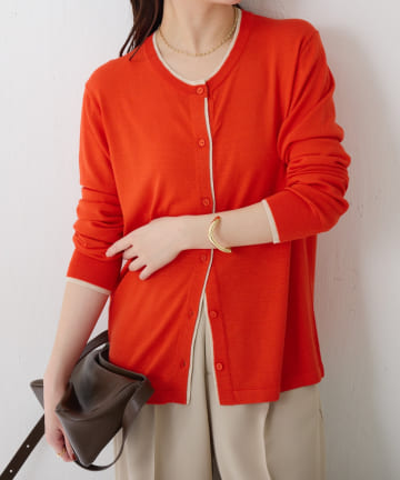 【冷房対策◎】レイヤード風クルーネックカーディガン