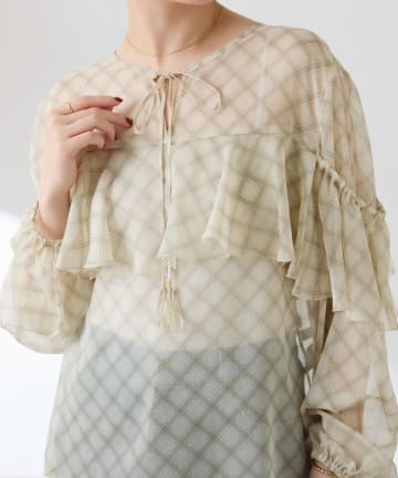 【着映えアイテム】チェックシフォンラッフルブラウス