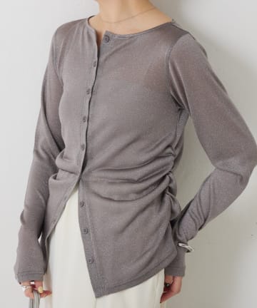 【軽量/体型カバー】ギャザー切替シアーシャツカーディガン